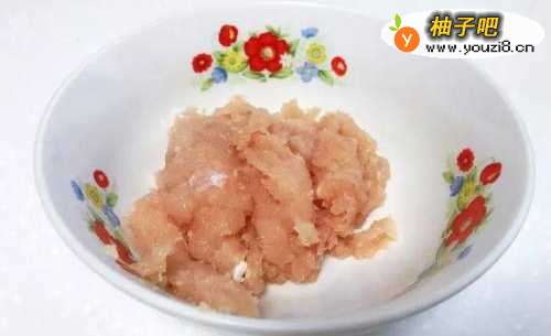 4将绞肉揉成圆饼状,如果怕沾锅,可以在鸡肉饼外沾一层薄薄的生粉