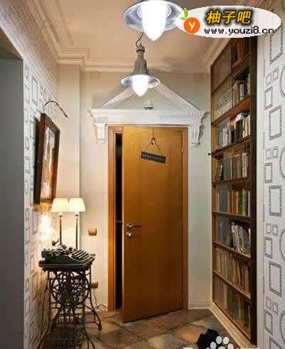 2屋主肯定是酷爱读书,进门处也有一个大的书架,吊顶和墙纸,有欧式宫廷的风格。