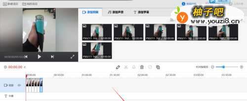 5再将我们添加的素材移动到下方进度条进行整理编辑