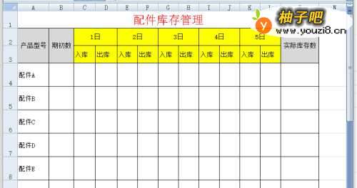 建立配件的基本数据,基本数据包括品号、型号、规格等,逐个输入上去,空表如下:配件放在行内,日期放在列内。