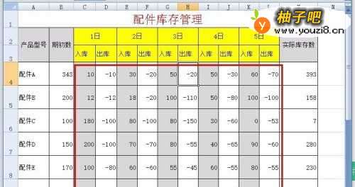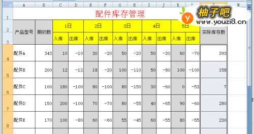 说明:配件一般都是发给客户的,但也是出库数;数据输入需要仓库管理员的细心和耐心,数据一定不能输错,也可以通过设置单元格的格式防止出错。