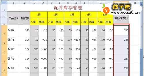 5按回车后,即得出目前的实际库存数。