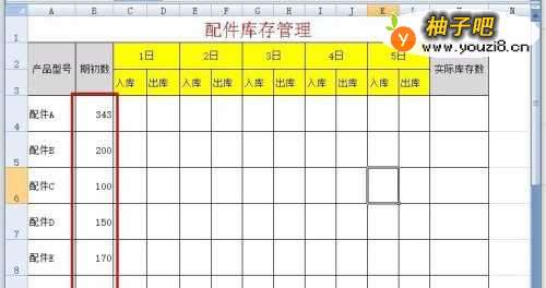 2输入配件的”期初数“;