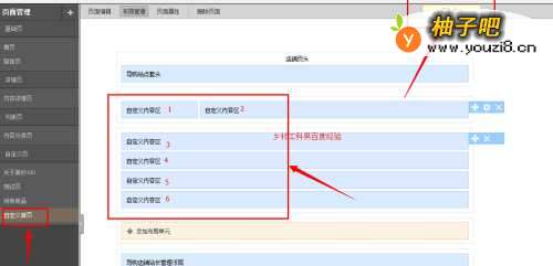 8这个新建的自定义页面对布局中的自定义内容区个数没有限制,如下图所示,给我们刚添加的自定义首页中添加了六个自定义内容区,点击保存,显示“操作成功”。