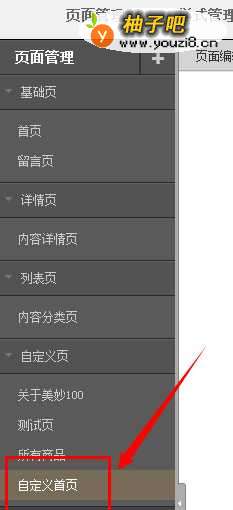 6保存自定义首页之后,会在左侧导航栏的自定义页面中新增一个你建立的页面,点击该页面对其进行编辑。