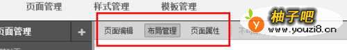 2对某个页面的编辑分为3个部分,如下图所示为“页面编辑”、“布局管理”和“页面属性”,在页面布局中添加自定义内容区,自定义内容区是可视化优站装修的重中之重。所有的页面内容都是在自定义内容区中进行编辑的。