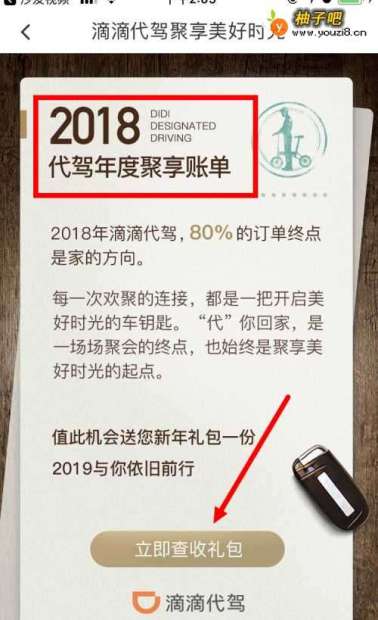 6最后显示的是 2018代驾年度聚享账单 。再点击 立即查看礼包 。
