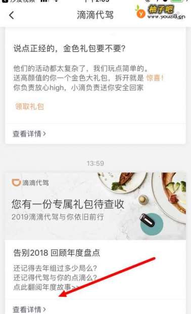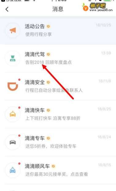 2进入消息页面后,点击 滴滴代驾 告别2018 回顾年度盘点 。
