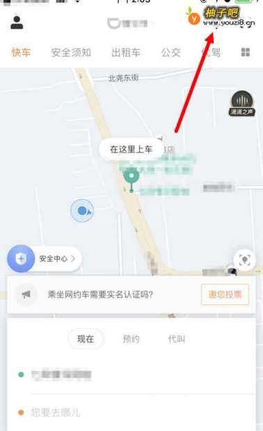 首先在手机上打开并登录滴滴出行,并在售页面点击右上角的图标。