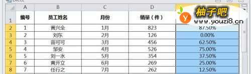 5最后,按CTRL+D就可以将销量按百分比排位,如下图所示。