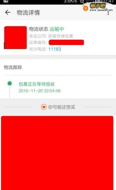 5然后会展示出订单的物流状态和各个物流环节的配送情况,运送单号等等