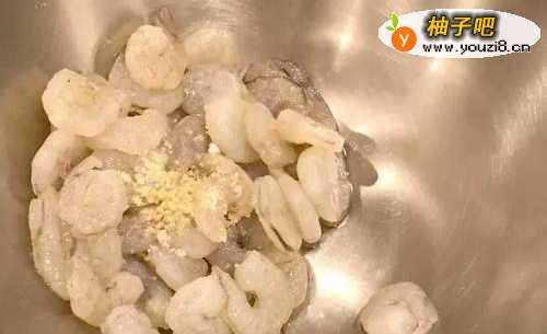 3起油锅加入1大匙油,爆香蒜头及辣椒后,加入虾仁拌炒