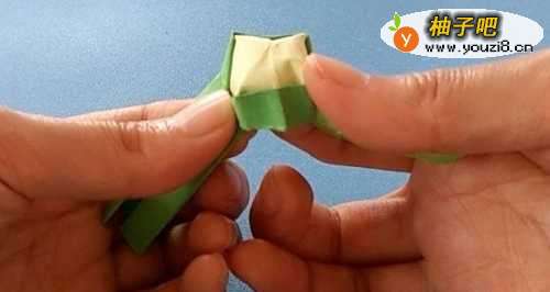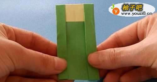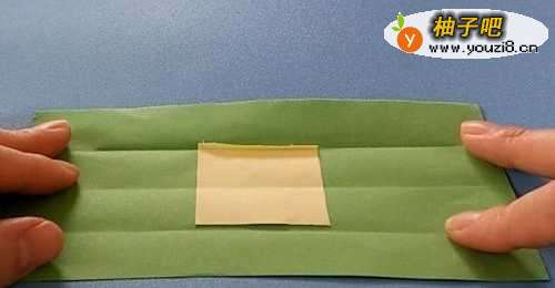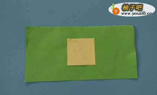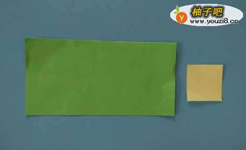 准备好一块绿色长方形纸和一块黄色的小正方形纸。