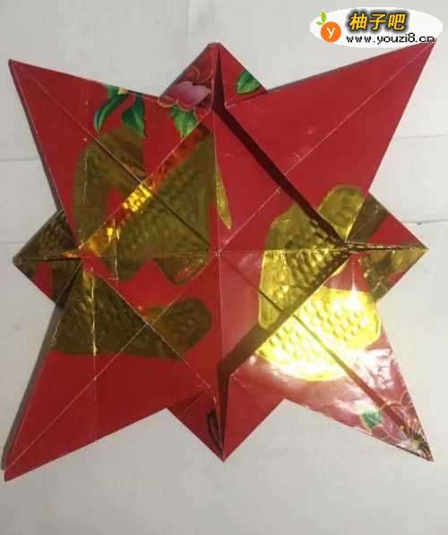 9第九步 都折好之后 整理一下 保持左右对称 上下一致 然后再把它翻过来 整理一下 放上一张照片 一副漂亮的北极星小相框就折叠完成了