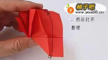 11将底部向上进行折叠,即如折纸图示所示进行折叠实施。在完成之后就能开始对这个手工折纸玫瑰进行整形了。整形的重点实际上就是在折纸玫瑰的花瓣处进行一些折叠整理。最终是否在效果上真正的变得好看了,还在于你的整形功力哦。能看到最终完成的手工折纸玫瑰也是非常漂亮的!
