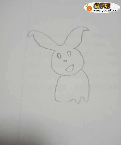 2然后用一条弧线画出兔子的头。