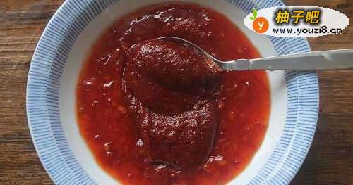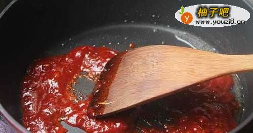 4把甜辣酱和韩式辣酱搅拌均匀;