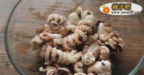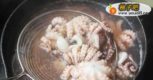 2把八爪鱼冲洗干净,然后烧热一锅水,放入八爪鱼,水沸腾后煮2分钟,八爪鱼都卷起来即可