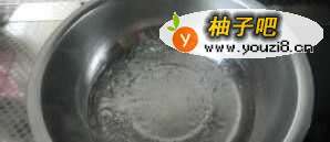 3取一个大盆加入300克水和10毫升色拉油煮开后关小火。