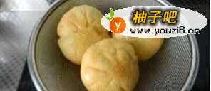8取一份面团按扁,包入一勺白糖馅。