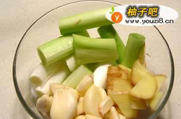 2葱切段,姜切片,辣椒切小备用