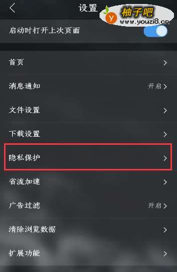 5在下面的选项中找到隐私保护,如图所示