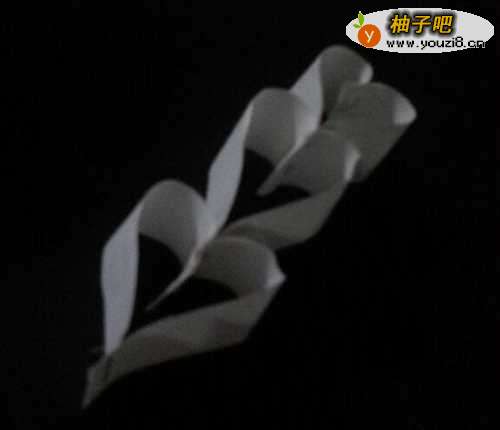 3然后把它折到对面,尾部用订书机订上;顶部折成爱心图形。