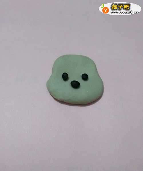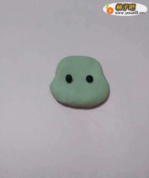 3用黑色捏两个圆形的小球,粘在头的中间,当作眼睛。