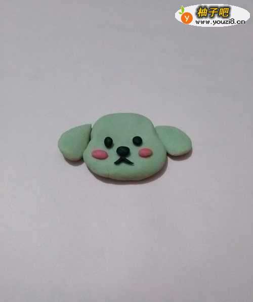 8用白色捏一个椭圆形,粘在头部下面,当作小狗的身体。