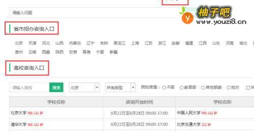 5需根据自己的问题,选择是咨询招办还是学校。如是自己分数省份排名等问题,可咨询招办,点击省份,即可进入下图对应页面。