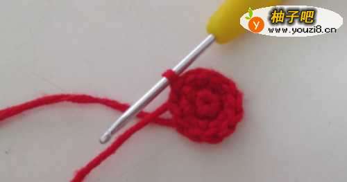 第1圈:环形起针,在线圈里钩6个短针,然后抽紧线头,与第一针进行引拔针连接,完成第一圈的钩织。