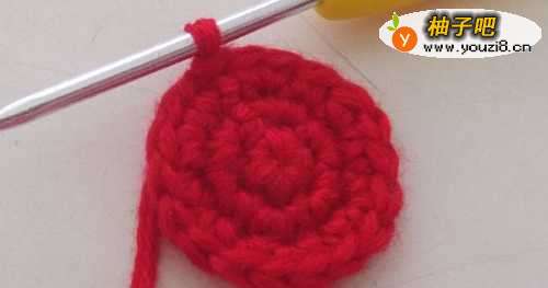 3第3圈:还是短针的加针,隔一针加针,针数是18针,与第一针进行引拔针连接,完成第三圈。