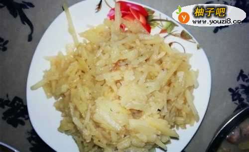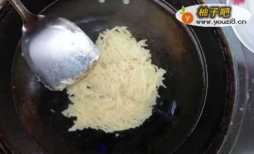 3把切好的土豆丝放入油锅里翻炒