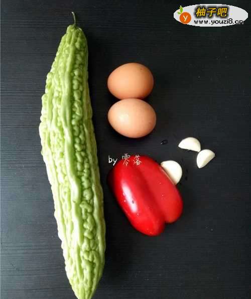 备好食材:苦瓜,鸡蛋,甜椒,大蒜,小葱;