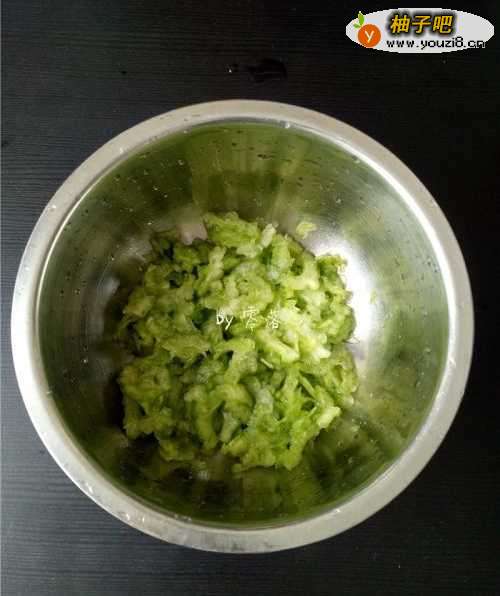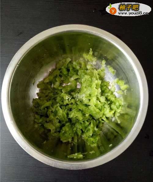 5苦瓜腌制完毕,变软,出水后将水倒掉;再用清水冲洗干净,挤干水分;