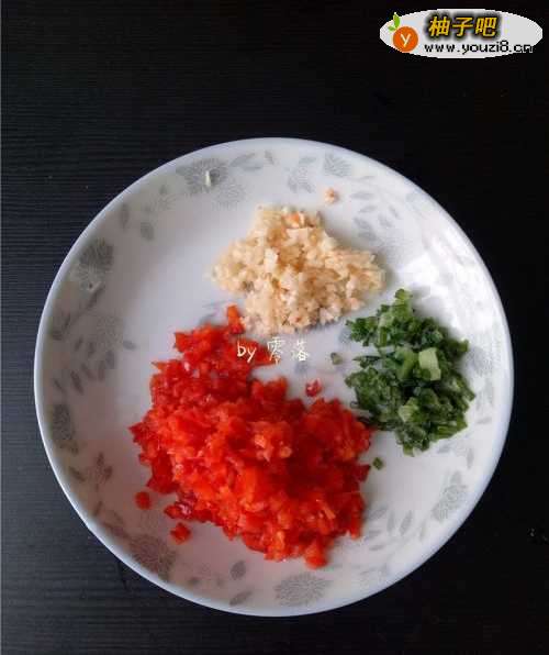 4腌制苦瓜时,可将甜椒,大蒜,小葱分别切碎;