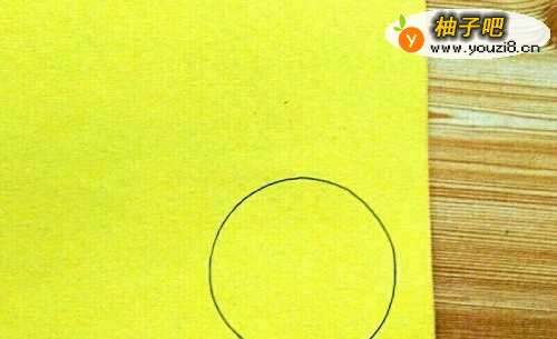3取出一张卡纸,用作图工具和笔在卡纸上画一个适当大小的圆形。