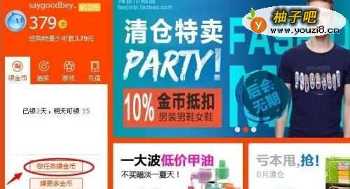 4登陆手机淘宝客户端 :点击领金币