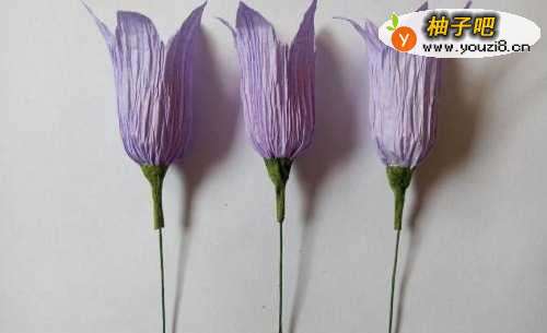 紫色皱纹纸、绿色皱纹纸、黄色皱纹纸、铁丝