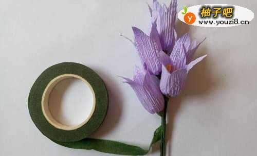 10将花用绿色胶带捆扎在一起。