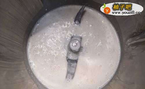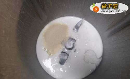 3把酵母、糖、酒酿倒进米浆