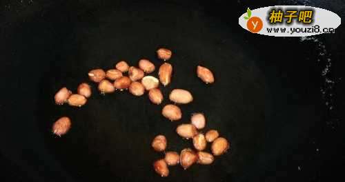 4锅中放油,放入适量花生炸熟,这是配料(用的时候要去皮,然后做成花生碎)。