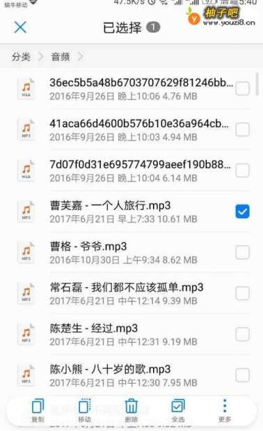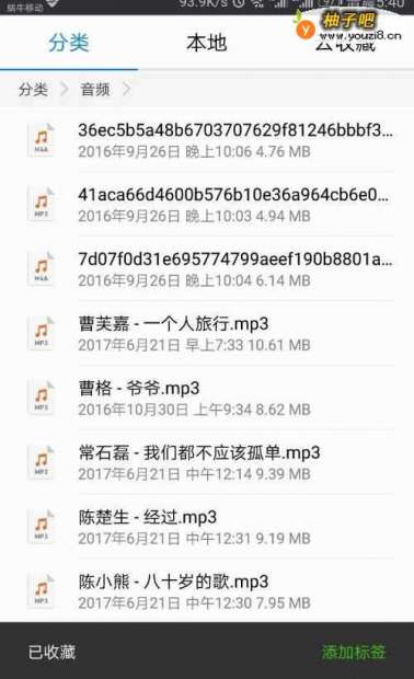 要想给好友分享音乐,首先你要先找到一首本地音乐,启用手机内部存储,点击音频找到一首你要分享的歌曲