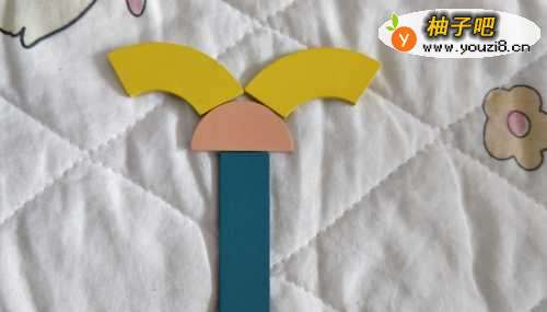 3在上面,放上两个左右排列的黄色弧形,如图。