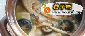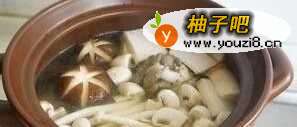8将菌菇一起放入砂锅炖汤~能中火沸腾后转小火