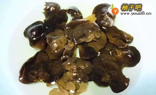 首先取一小把木耳用温水提前泡发,大约跑30分钟后清洗干净,稍微用刀切碎即可。