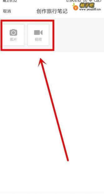 5进入到创作旅行笔记这个页面中之后,在该页面中我们先上传图片或者视频。