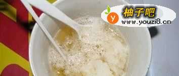 4把鸡蛋白,蜂蜜混合,搅拌,搅拌均匀,