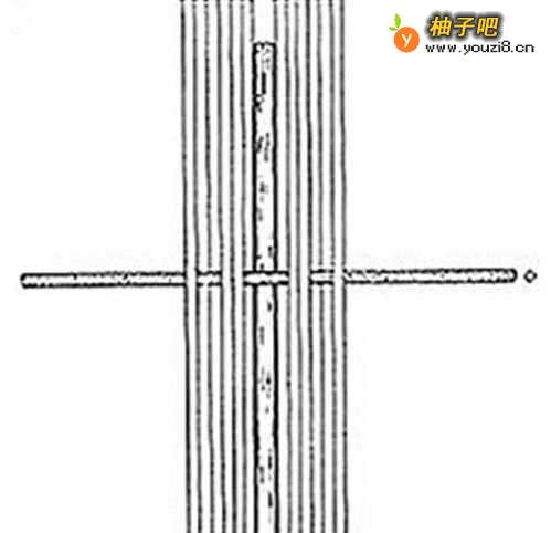 3以中间编号0的黄色纬材为中心,上下各增加七支红色纬材