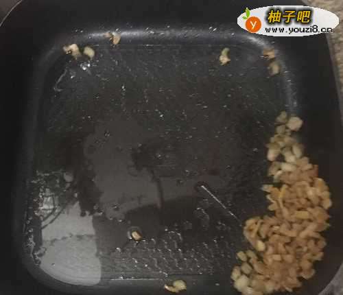 4将肥肉丁和姜丁放入锅中干炒,炸出油来。这边放姜是为了去除肉的腥味。一边炒右边撒一点盐花调味。